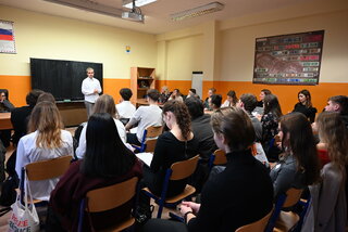 Dňa 26. 11. 2025 sa na pôde SOŠ obchodu a služieb v Trenčíne uskutočnila bilingválna krajská súťaž v rétorike pod názvom Majster rétor / Master of Rhetoric – paralelne v slovenskom aj anglickom jazyku.