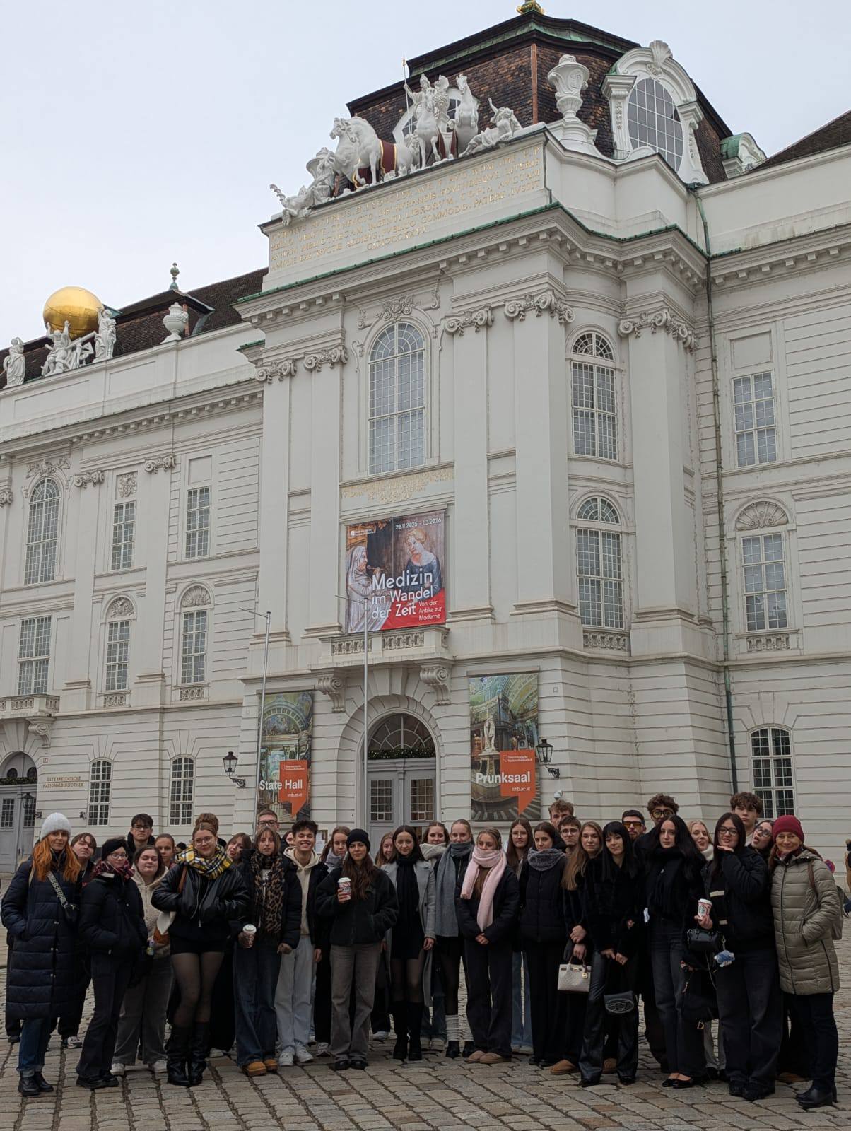 Dňa 20.11. 2025 sa žiaci našej školy (III. HA, III. P., III. ER) s pedagogickým dozorom (p. Masárová a Švecová) zúčastnili zahraničnej exkurzie vo Viedni. Exkurzia bola zameraná na spoznávanie histórie, kultúrneho bohatstva nemecky hovoriacich krajín. Našu exkurziu sme začali prehliadkou Hofburgu – zimného sídla Habsburgovcov, návštevou "Prunksaal" v Rakúskej národnej knižnici. Ďalej prehliadka pokračovala prechádzkou v historickom centre, kde sme videli množstvo zaujímavých historických pamiatok ako napr. Stephansdom – symbol mesta, Staatsoper - štátnu operu, Kapuzinergruft – cisársku hrobku, Parlament, Burgtheater – hradné divadlo.