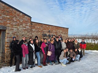 Naša cesta začala priamo vo vinohradoch, kde sme sa dozvedeli viac o pestovaní viniča a význame miestneho terroiru. Odborný výklad pokračoval v technologických priestoroch, kde sme si vypočuli o moderných metódach spracovania hrozna, od odstopkovania až po proces fermentácie, zrenia v sudoch, fľašovanie až po expedíciu.