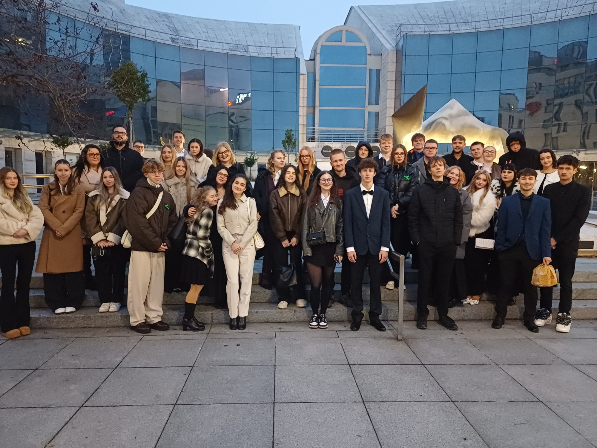 Dňa 13.11. 2025 sme boli so žiakmi z maturitných tried na večernom predstavení Kocúrkovo v SND BA – atmosféra bola úžasná!