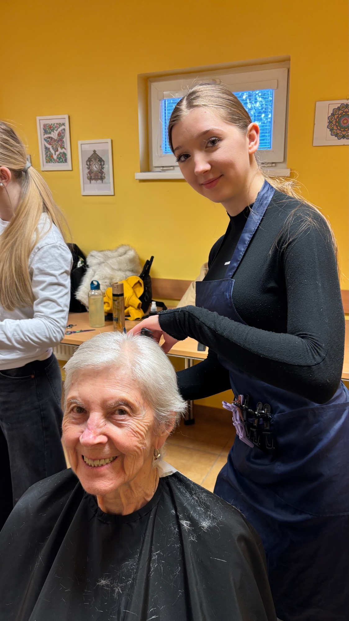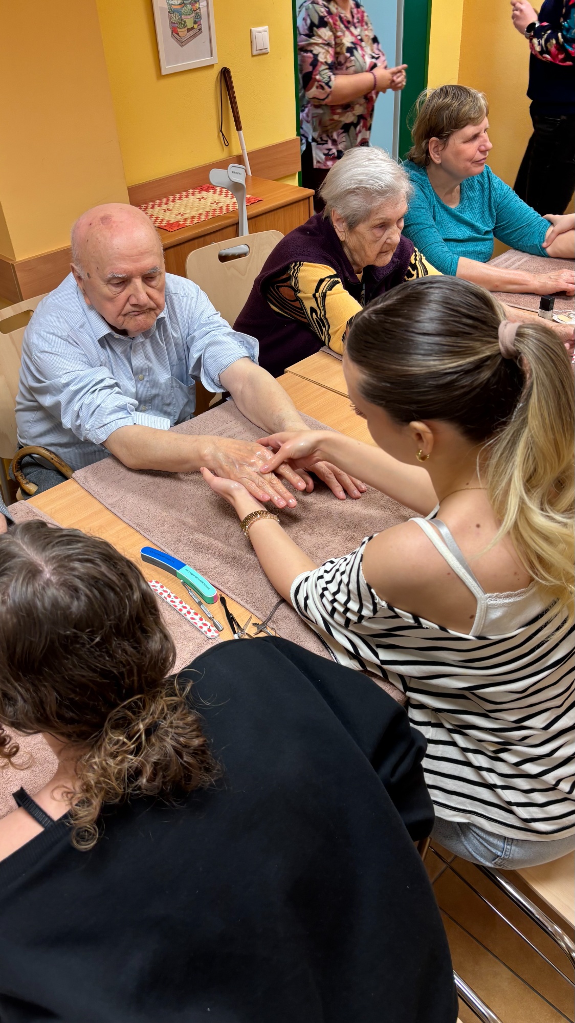 Dňa 9. 3. 2026 žiačky odboru kozmetik z triedy III.OZ spolu so žiačkami odboru kaderník z triedy II.BD navštívili Zariadenie opatrovateľskej služby na Piaristickej ulici v Trenčíne. Počas návštevy mali žiačky možnosť predviesť svoje praktické zručnosti z oblasti masáže rúk, manikúry, strihania vlasov a konečnej úpravy vlasov.