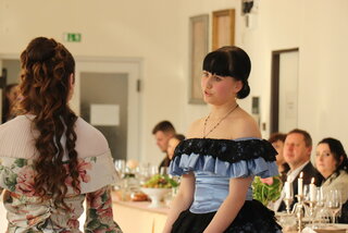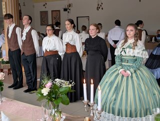Študenti premenili priestory školskej jedálne na elegantné miesto s nádychom histórie – nechýbala slávnostná a dobovo ladená výzdoba, ktorá umocnila celkovú atmosféru podujatia. Okrem toho si pripravili chutné menu, ktoré sami navarili a s profesionalitou servírovali svojim hosťom.