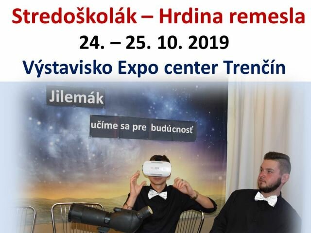 Prezentácia stredných škôl na Výstavisku v Trenčíne. Jilemák propagoval učebné a študijné odbory pre žiakov ZŠ. Získali sme cenu publika za najkrajší stánok a prezentáciu školy. Pozývame vás na Deň otvotených dverí 12. 12. 2019