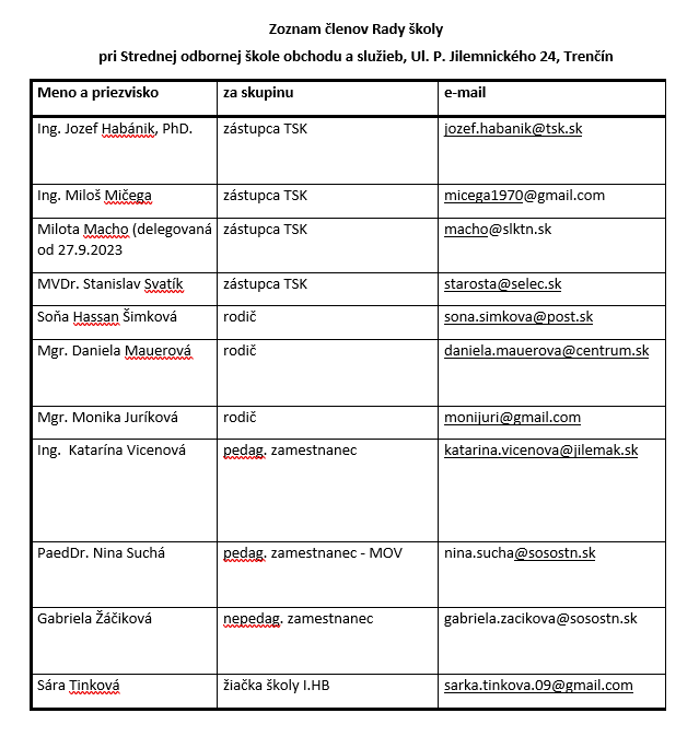 Rada školy pri Strednej odbornej škole obchodu a služieb, Ul. P. Jilemnického 24, Trenčín
